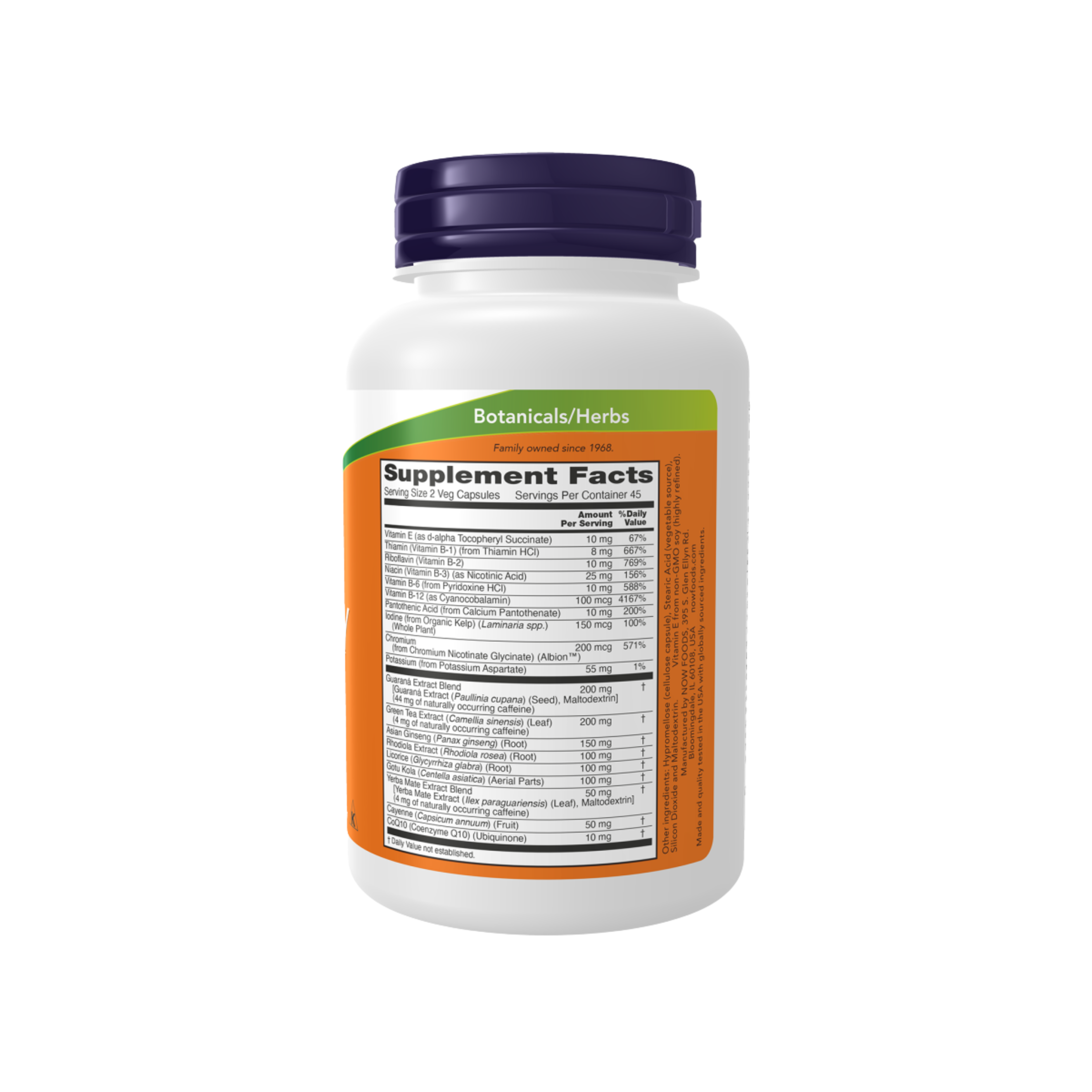 A fórmula Energy™ da Now combina vitaminas do complexo B, magnésio, creatina, carnitina, ginseng e outros nutrientes que participam nos processos de geração de energia a nível celular.
