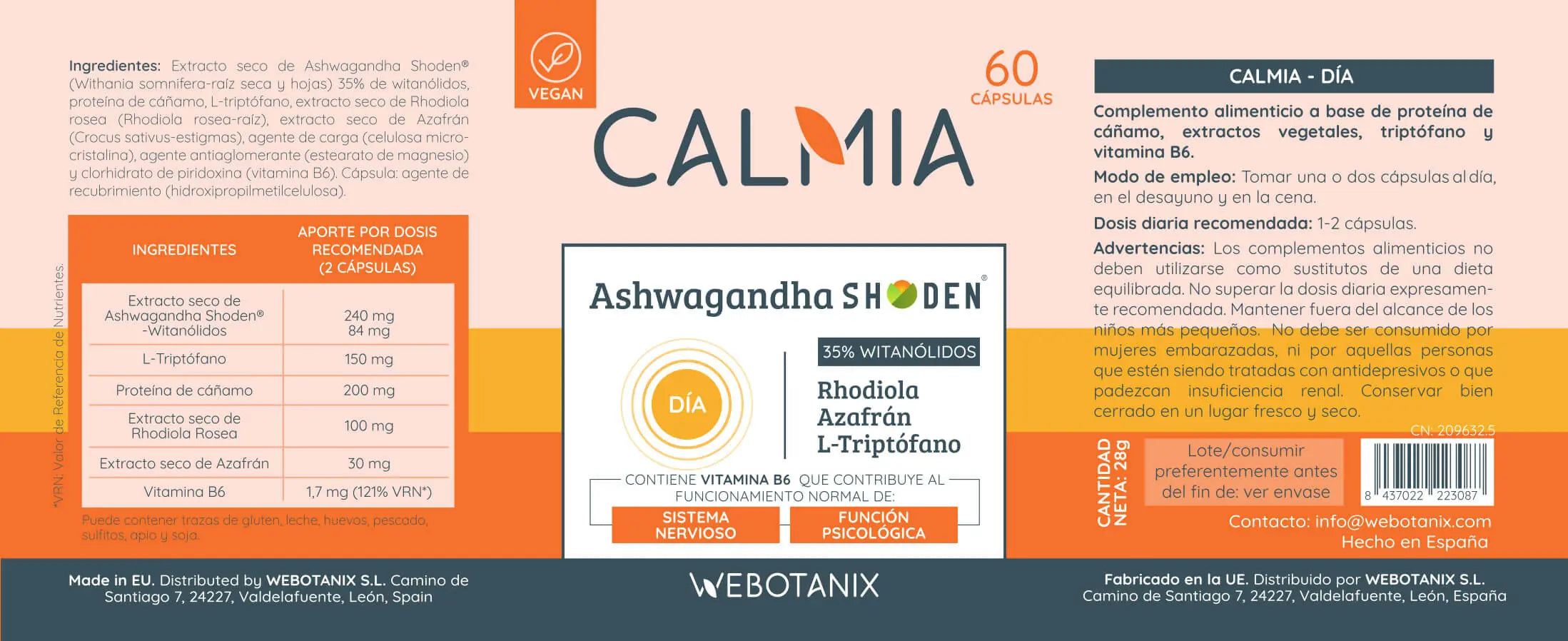 Calmia Dia da Webotanix é um suplemento alimentar à base de proteína de cânhamo, extratos vegetais, triptofano e vitamina B6 que proporciona equilíbrio e vitalidade ao seu organismo e promove o bom funcionamento do sistema nervoso e a função psicológica.