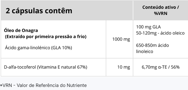 O Óleo de Onagra contém ácidogama-linoleico (GLA) que desempenha um papel fundamental como precursor de prostaglandinas que possuem inúmeras funções no organismo.