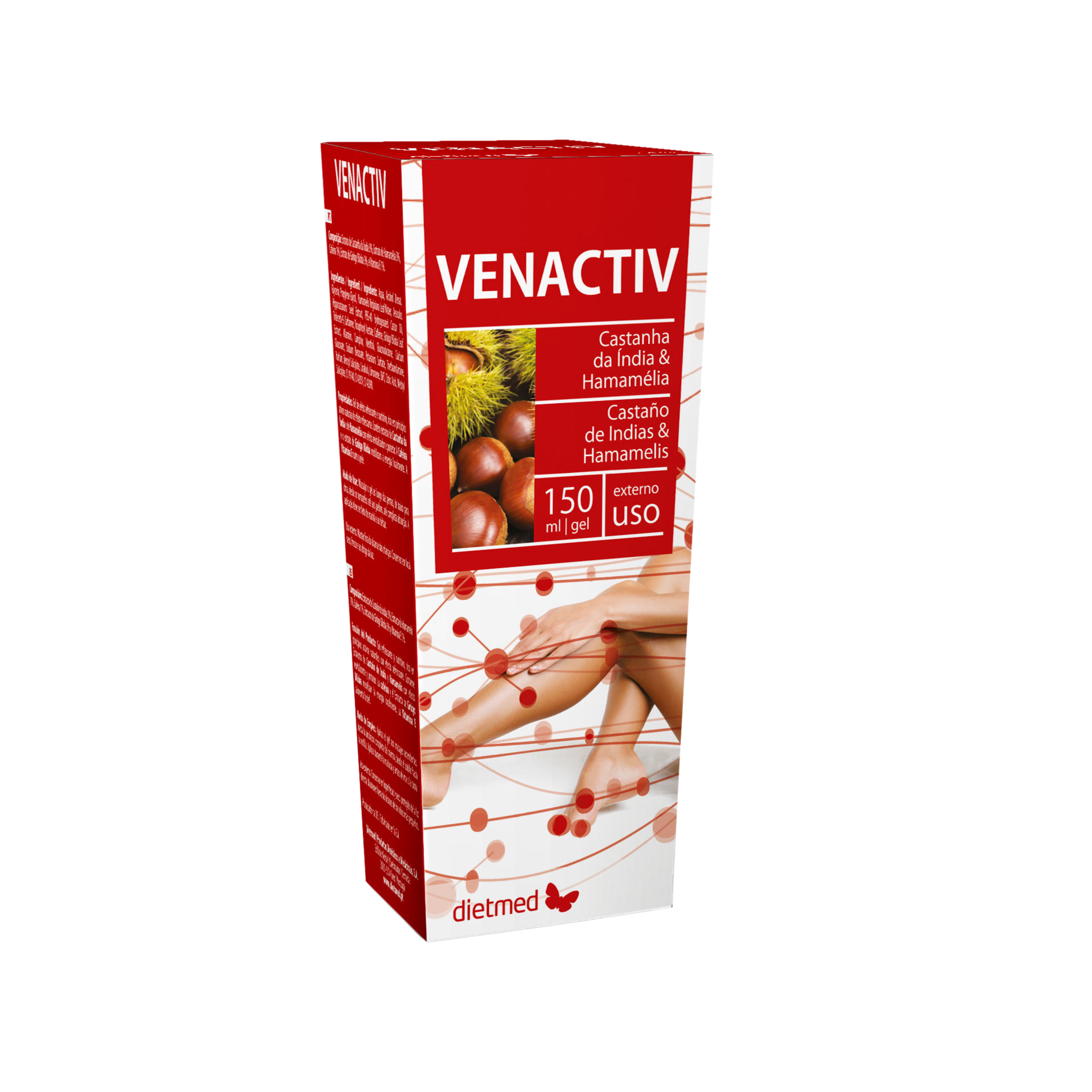 Venactiv da Dietmed é um gel hidratante, nutritivo, rico em princípios activos naturais de efeito relaxante e refrescante para as pernas. Alivia a sensação de pernas cansadas e pesadas. Contém extractos de Castanha da Índia e de Hamamélia com efeito revitalizador e protector. A Cafeína e o extracto de Ginkgo Biloba mobilizam a energia localmente, fazendo com que a sensação de pernas pesadas desapareça. As Pérolas de Vitaminas nutrem e suavizam a pele, deixando-a hidratada e saudável.
